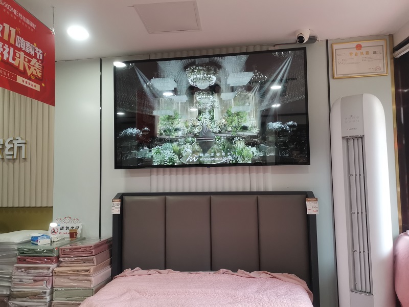 [廣告發(fā)布]合肥高劉家紡店采購我司一臺75寸壁掛廣告機