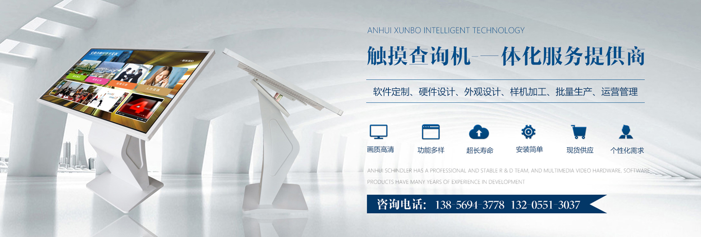 迅博智能 主要從事觸摸屏、觸摸顯示器、OLED柔性觸摸屏、觸摸查詢一體機系列產(chǎn)品及觸摸顯示互動體驗軟硬件產(chǎn)品;智能排隊叫號、網(wǎng)上預(yù)約排隊叫號、安康碼皖事通取號系統(tǒng);曲面屏、OLED 屏幕、柔性屏、LCD液晶大屏拼接系統(tǒng);落地式、壁掛式單機版網(wǎng)絡(luò)版室內(nèi)外廣告機及數(shù)字標牌廣告信息發(fā)布系統(tǒng);室內(nèi)外LED電子格柵透明屏、單雙色、全彩電子大屏;各類辦事營業(yè)廳:公積金...